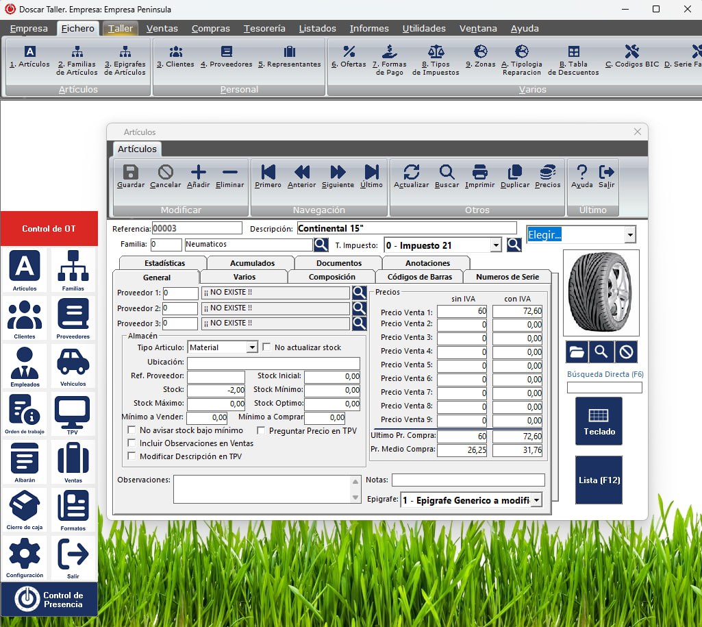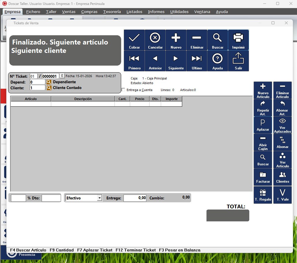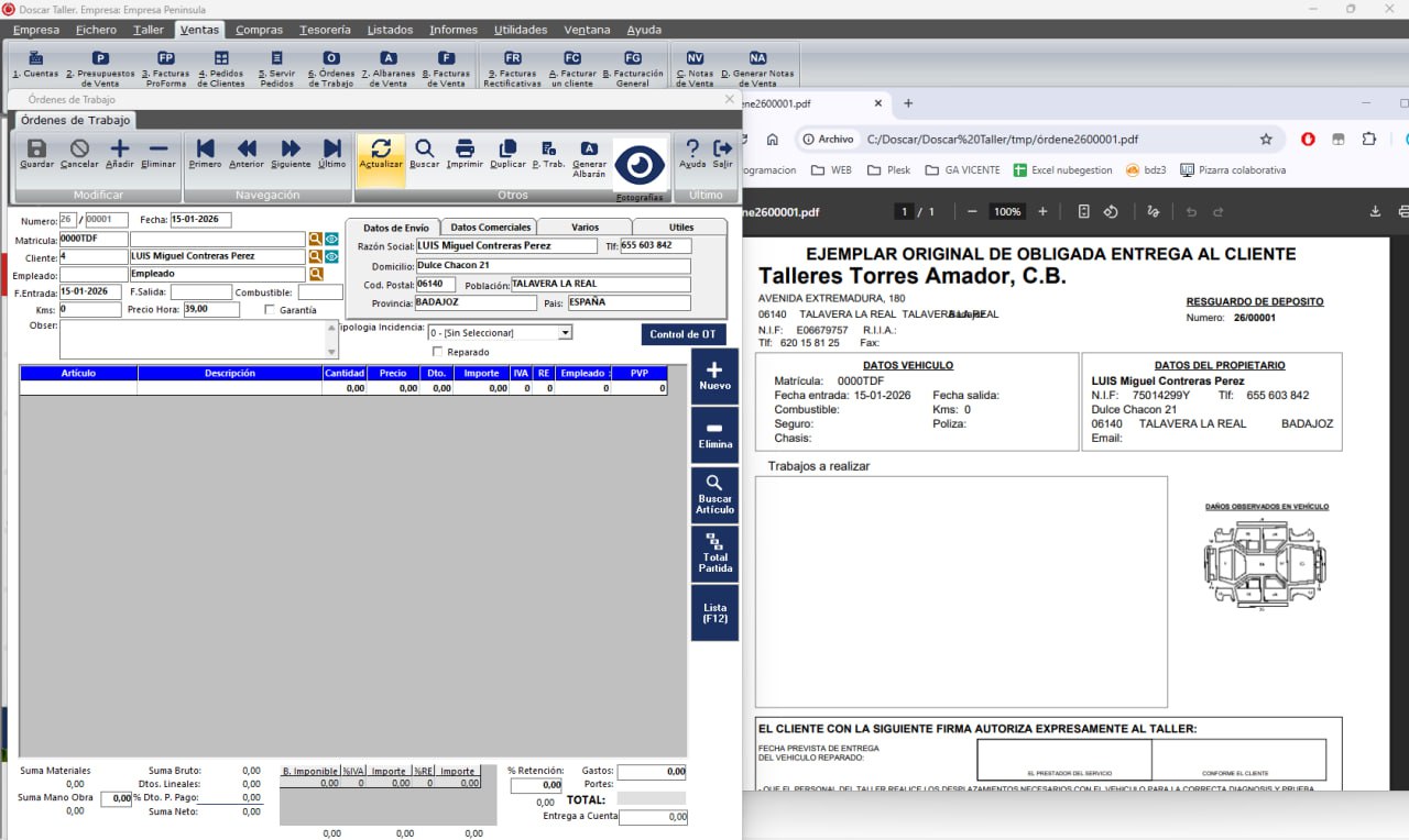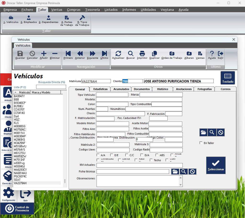 Doscar gestión de talleres programa fácil y sencillo para la gestion completa de talleres.Con el software de Doscar taller podrá gestionar los vehículos por matrículas. Creación y modificación de artículos, control de stock de forma fácil e intuitiva, también genera etiquetas para la impresión de código de barras. Generación de presupuestos, proforma, albaranes, y factura de ventas y compra. Exportación de listados e informes a excel, pdf y word.